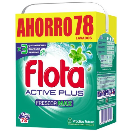 El detergente en polvo Active Plus de la marca Flota está especialmente ideado para un óptimo lavado de la ropa a máquina. Gracias a su fórmula mejorada proporciona una limpieza profunda, un mayor frescor y una blancura más intensa en tus prendas de ropa.